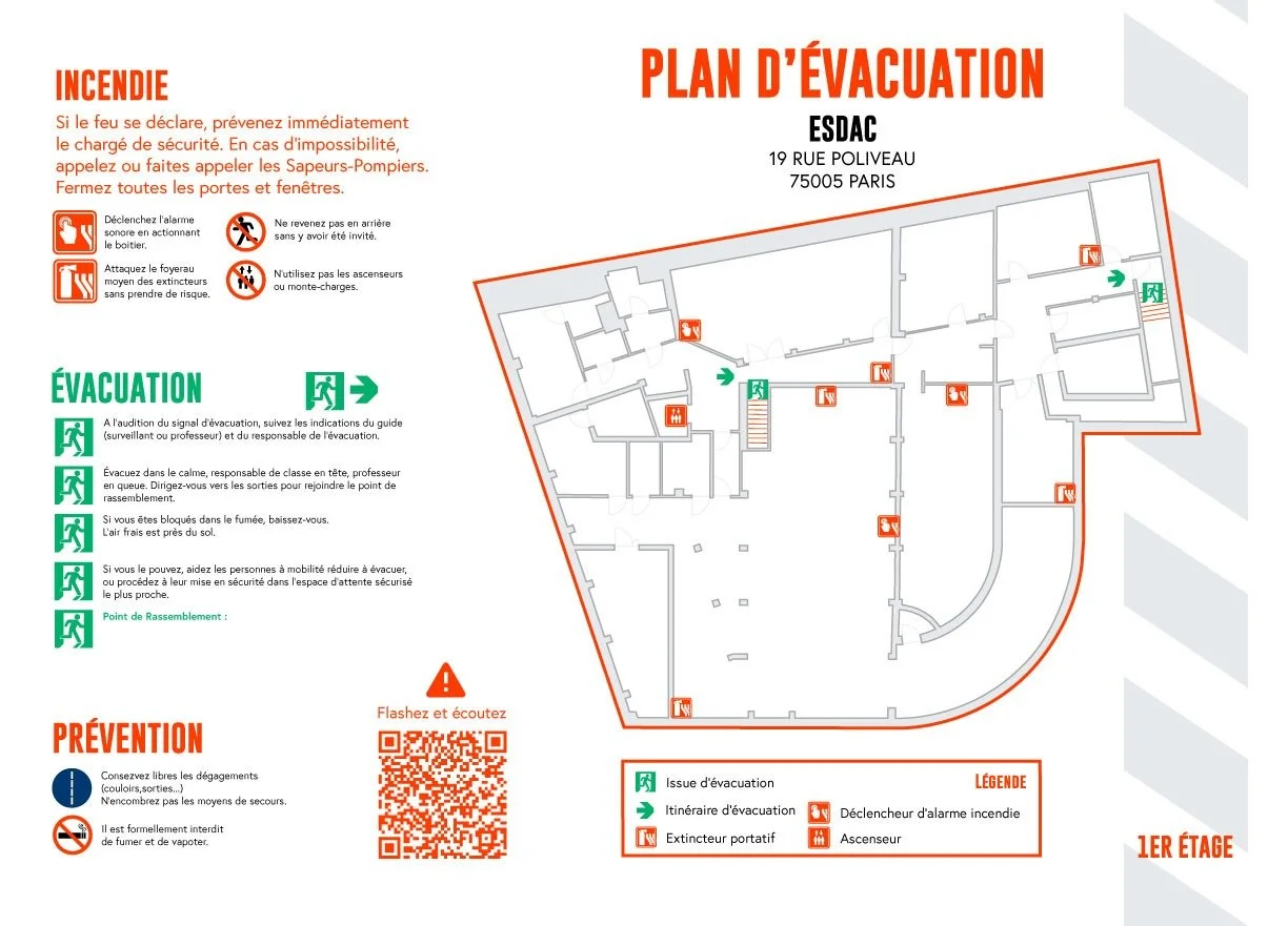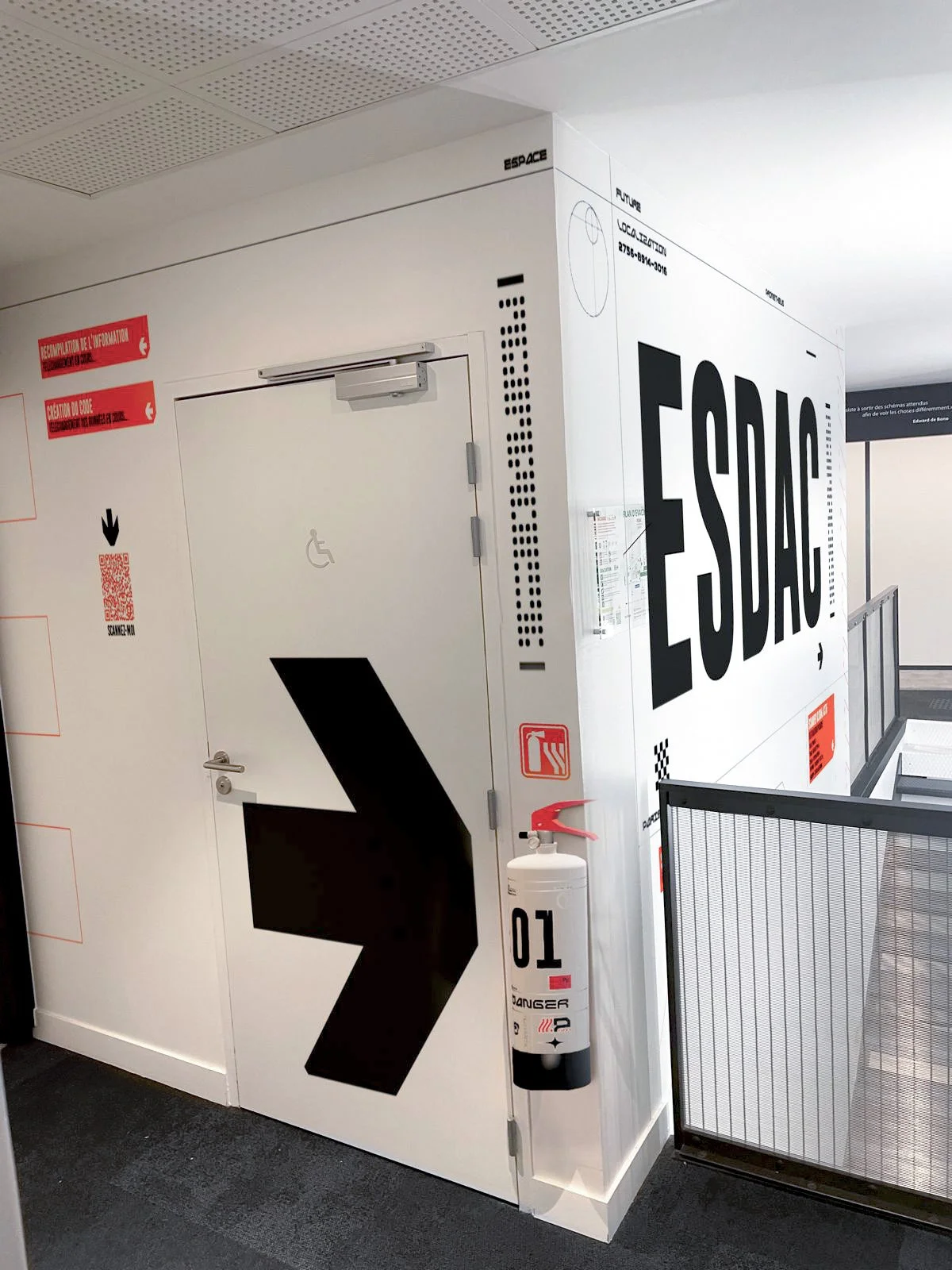 Sa campagne met volontairement l’objet en avant sur le campus de l'école ESDAC, transformant la sécurité incendie en véritable élément de décor. Le logo, en typographie, joue sur trois barres orange évoquant une flamme, déclinées selon l’usage.